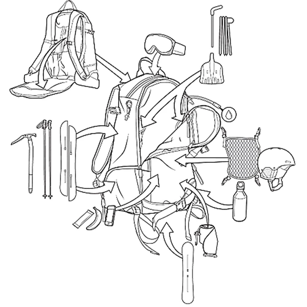 Desweiteren befindet sich auf dem Snowboardrucksack ein extern zugängliches Fach für deine Goggle, eine abnehmbare Helmhalterung und eine vertikale Boardhalterung. Neben diesen wichtigen Features bleibt dir zusätzlich die Möglichkeit dein Splitboard am A-Rahmen zu befestigen und demnach frisch gepowdertes Gelände im Hiking zu erkunden. Boot-Aufbewahrung und der eingebaute Metallrahmen erleichtern dabei das Schleppen und das ergonomische Design mit gepolsterten und angepassten Tragegurten verbessert zusätzlich die Balance.