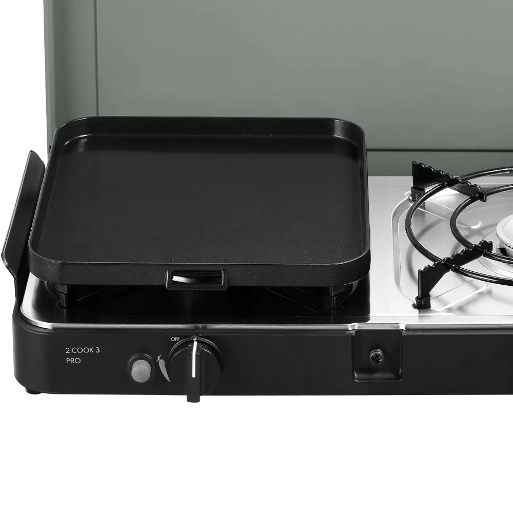 Diese flache Grillplatte mit GreenGrill-Keramikbeschichtung ist ein optionales Zubehör für den 2 Cook 3. Ideal zum Braten von Pfannkuchen, Eiern mit Speck, usw.