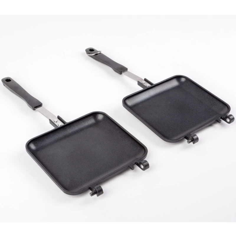 Sandwich Maker mit Antihaftbeschichtung und kühlem Griff für Gaskocher. Auch getrennt als zwei Pfännchen verwendbar.