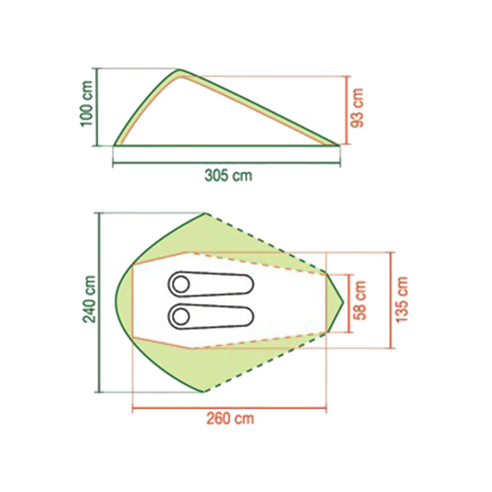 - Aufbau erfolgt zuerst über Aufstellung des Innenzeltes, danach Überwurf des Außenzeltes