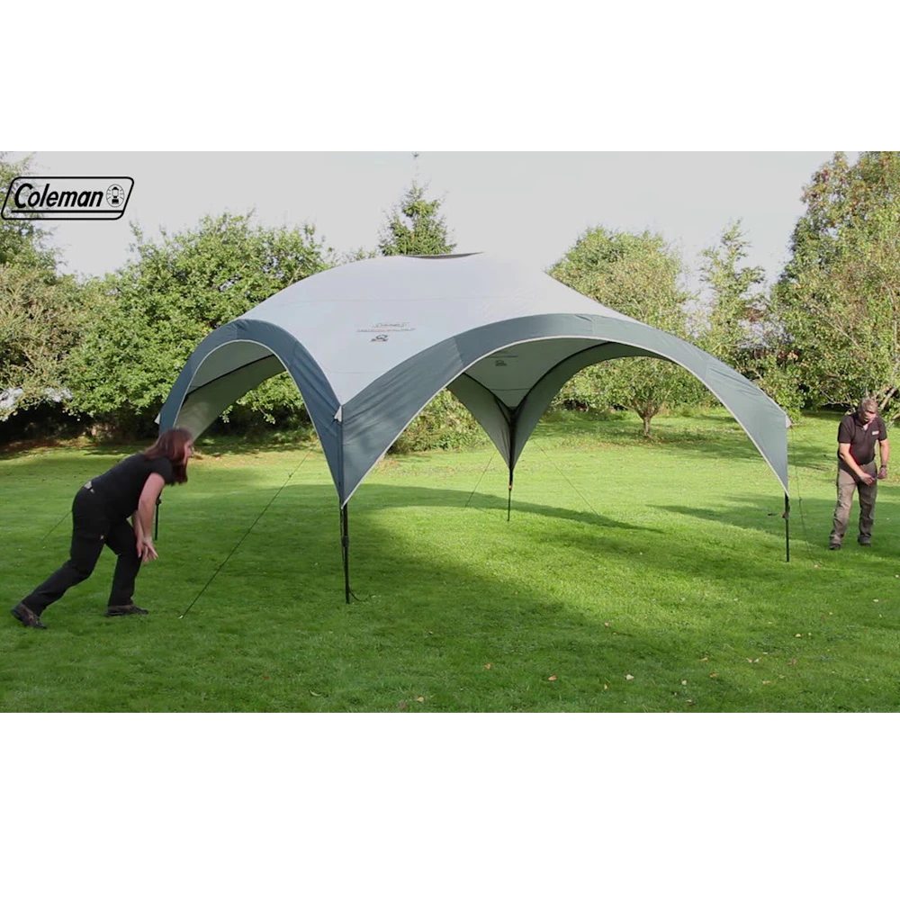 Wenn die Sommerfete nicht wetterabhängig sein soll, ist das Fastpitch Shelter XL das richtige Schutzelement um Hitze zu dämmen, leichten Regen abzuhalten und Sonnenbrand zu vermeiden. Der große Rund-Pavillon besitzt mit seiner Gesamtfläche von über 20 Quadratmeter ausreichend Platz zur Entspannung und dem gemütlichen Beisammen sein. Zudem lässt er sich dank vereinfachtem Steckmechanismus schnell und unkompliziert innerhalb weniger Minuten aufstellen. Über Druckknopf-Verstell-Regler lassen sich alle 4 Ecken jeweils in der Höhe verstellen, um eine optimale Anpassung an alle Gegebenheiten zu gewährleisten. Dank silberbeschichtetem Dach werden außerdem Temperaturen bis zu zweieinhalb Grad reduziert und UV-Strahlen abgeschirmt.