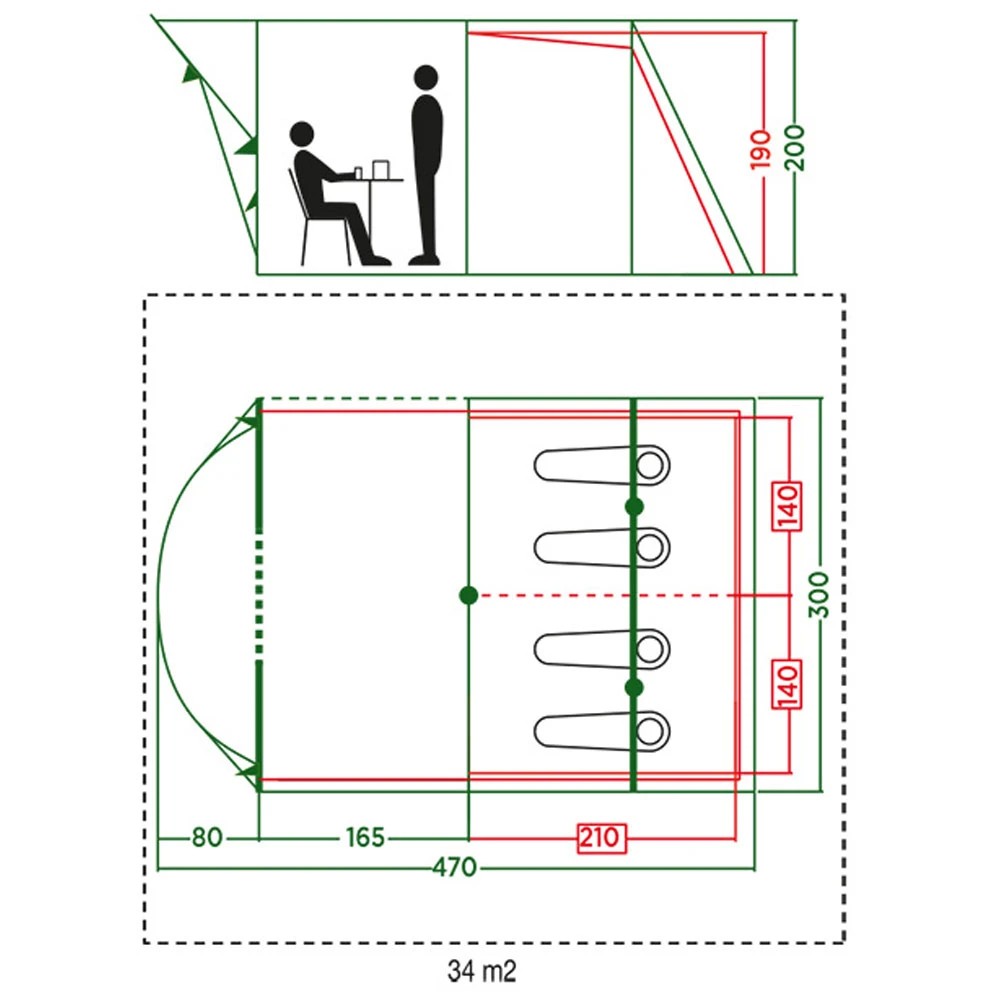 - Außenzelt: 100% Polyester, PU-beschichtet, feuerhemmend
