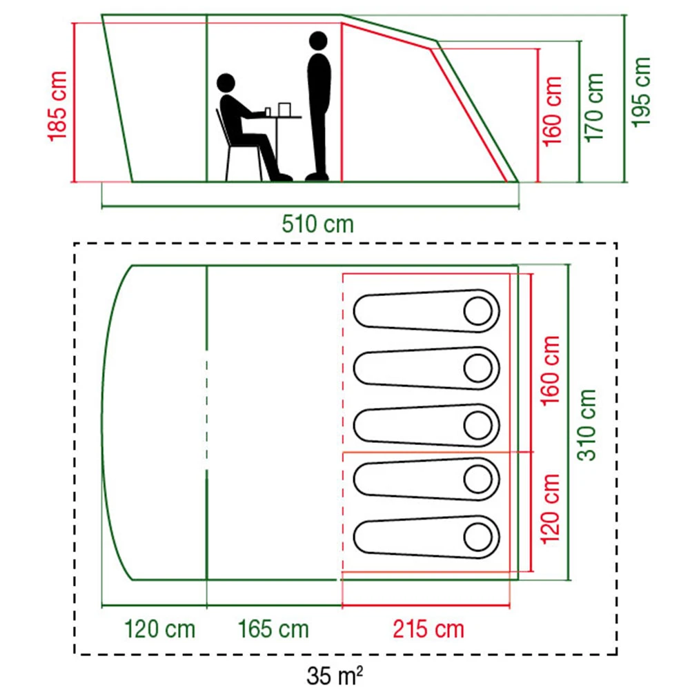 - Innenzelt: 100% Polyester, PU-beschichtet, atmungsaktiv, Moskitonetz