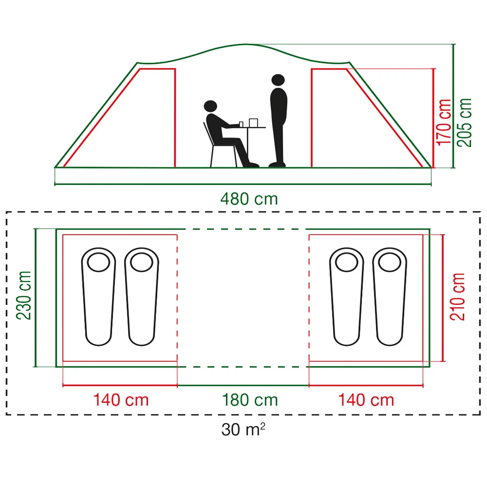 - vollständig integrierte Bodenplane in Schlafraum für saubere, trockene und mückenfreie Umgebung