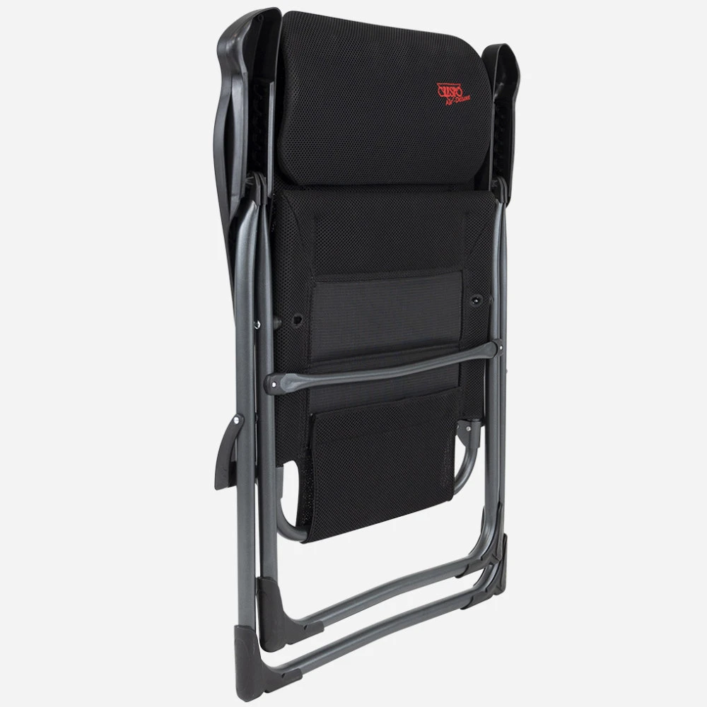 Ein extrem kompakter Stehstuhl. Der Stuhl lässt sich sehr flach zusammenklappen, er gilt auch als der flachste Campingstuhl. Dieser Stuhl bietet maximalen Komfort mit seiner 7-fach verstellbaren Rückenlehne und der stufenlos verstellbaren Kopfstütze.