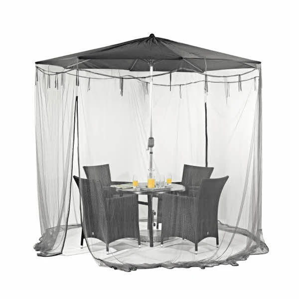 Schützt vor herumfliegenden Insekten. Schafft im Handumdrehen einen insektenfreien Raum. Passend für alle Sonnenschirme mit Durchmesser 300 cm.
