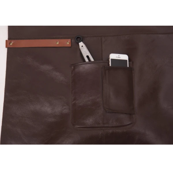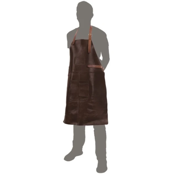 Grillschürze aus hochwertigem Leder mit 2 Taschen und verstellbaren Riemen.