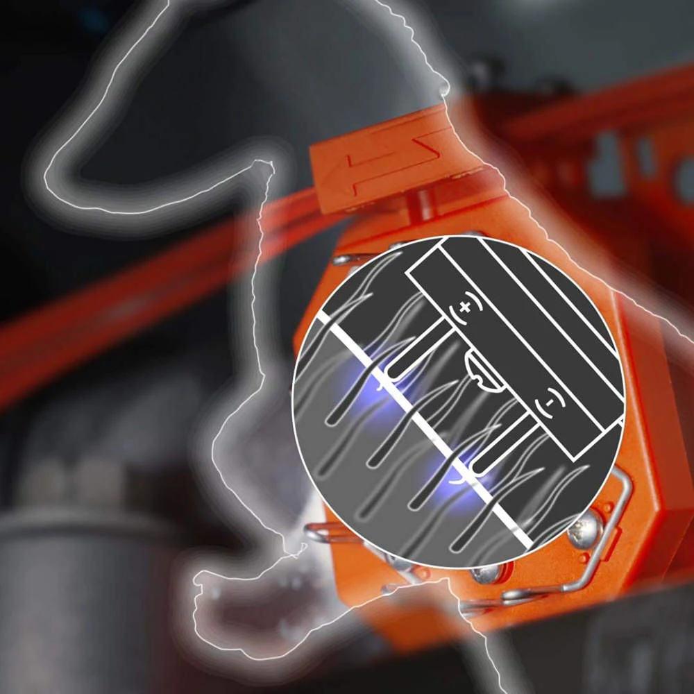 Das M9300 ist ein wasserdichtes Hochspannungsabwehrgerät gegen Marder. Es ist nicht auf das Bordnetz als Energiequelle angewiesen, sondern wird mit AA-Batterien (4 x AA 1,5 V, nicht im Lieferumfang enthalten) unabhängig betrieben – ganz ohne Belastung der Autobatterie. Dank der integrierten Low-Battery-Anzeige werden Sie rechtzeitig darüber informiert, dass die Batterien bald leer sein werden. Das Gerät schützt Ihr Fahrzeug effektiv, da die 6 Multikontakt-Hochspannungsbürsten das Fell der Marder an jeder Stelle durchdringen können.