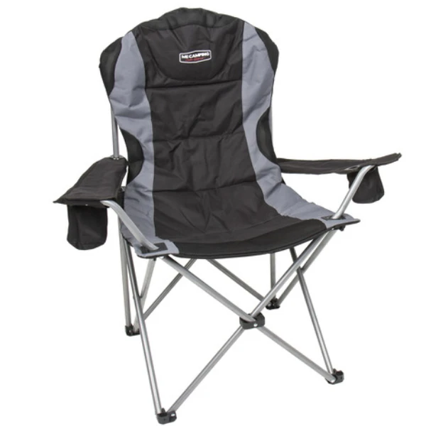 Durch das silberne Stahl-Gestell und das hochwertige 600D Polyster-Material in schwarz/grau wird dieser Faltstuhl zum unentbehrlichen Campingstuhl für alle Gelegenheiten.