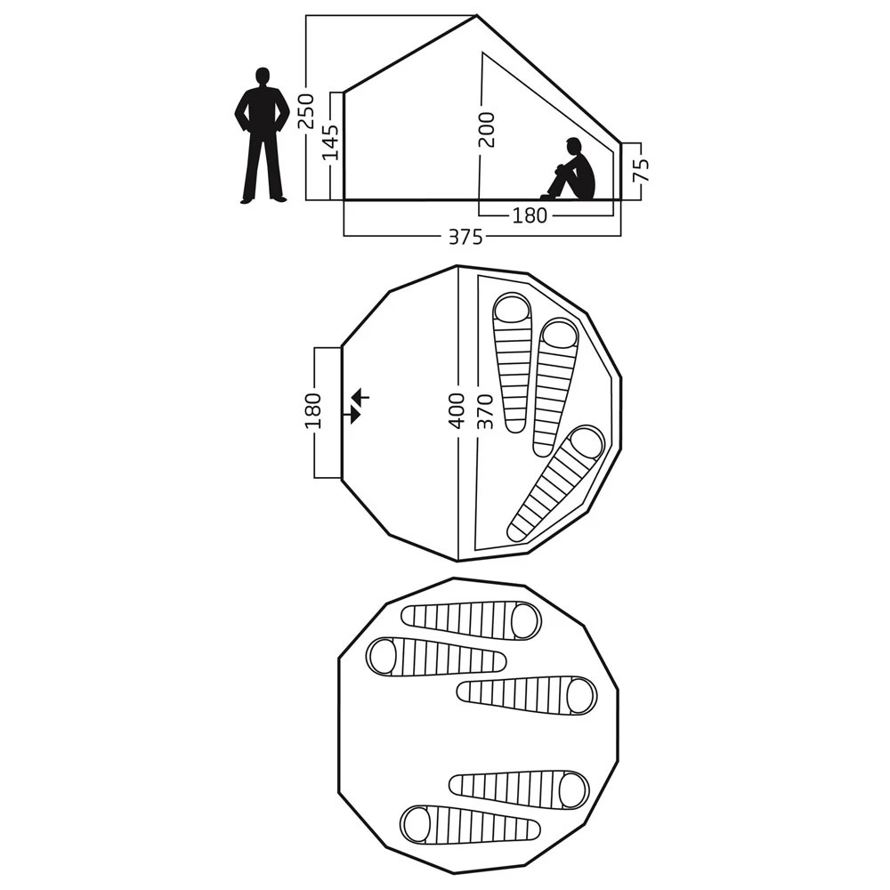 - Lieferumfang: 1 Zelt, Abspannleinen, Stahl-Gestänge, Heringe