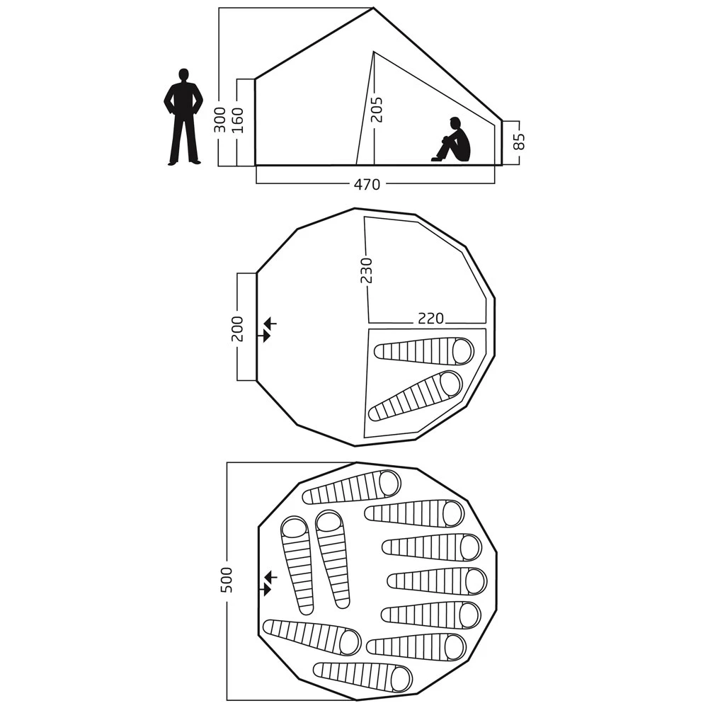 - Lieferumfang: 1 Zelt, Abspannleinen, Stahl-Gestänge, Heringe
