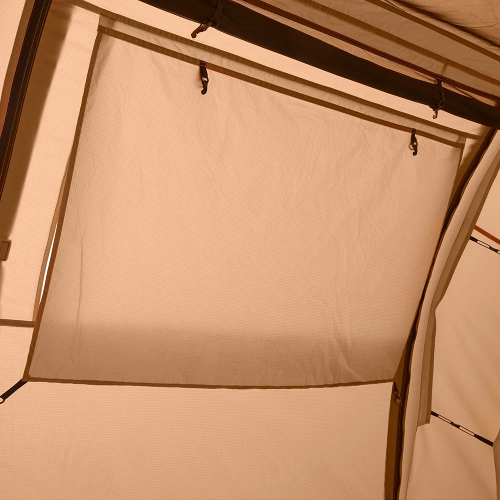 - Lieferumfang: 1 Zelt mit Tasche, 2 Innenkabinen, 1 Boden, Abspannleinen, Gestänge, Heringe