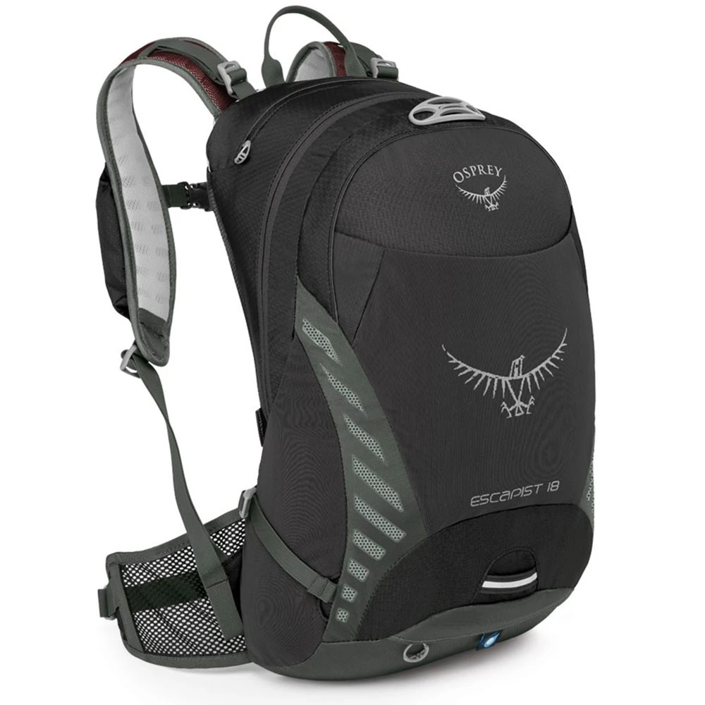 Der Escapist verfügt über eine Ausstattung welche sich im Bereich des Radsports einsetzen lässt und dabei mit einem besonders rückenschonenden Komfort überzeugt. Das Gesamtvolumen von 18 Litern verbirgt sich hinter einem robusten Obermaterial, welches sich bei wechselhaften Wetterbedingungen durch eine Regenhülle schützen lässt. Diese befindet sich im Bodenfach und lässt sich zügig über den Backpack stülpen. Das Packmaß konzentriert sich auf das geräumige Hauptfach mit 2-Wege-Reißverschluss sowie dem Organisationsfach auf der Vorderseite. Durch elastische Meshtaschen wird der Transport von Werkzeug sowie Luftpumpe unterstützt, während genügend Stauraum für Wechselbekleidung sowie Proviant übrig bleibt. Der Rucksack verfügt über elastische Einstecktaschen für Trinkflaschen sowie einem separaten Trinkblasenfach auf der Tragefläche. Zudem ermöglicht ein Wertsachenfach den Transport von Sonnenbrille und Smartphone.