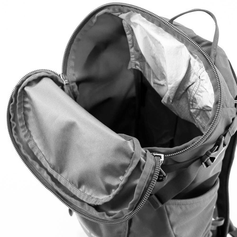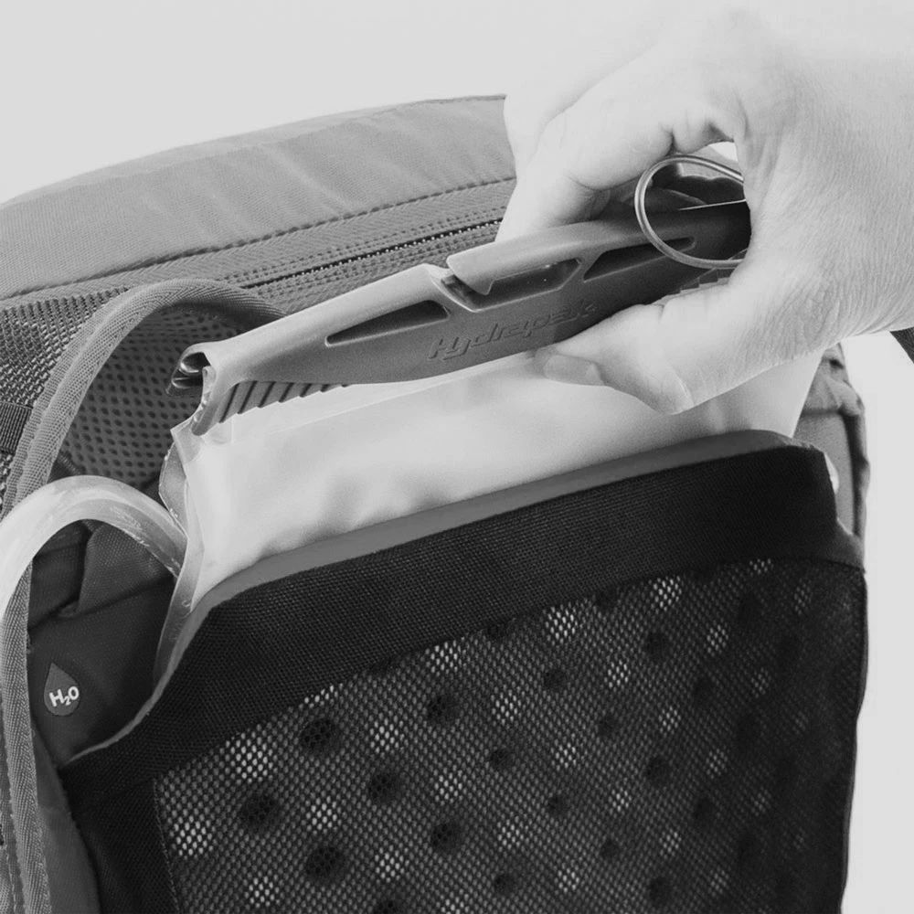 - Elastische Einstecktaschen seitlich des Rucksacks