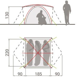 - Maße Außenzelt: 226 cm (Breite) x 322 cm (Länge) x 120 cm (Höhe)