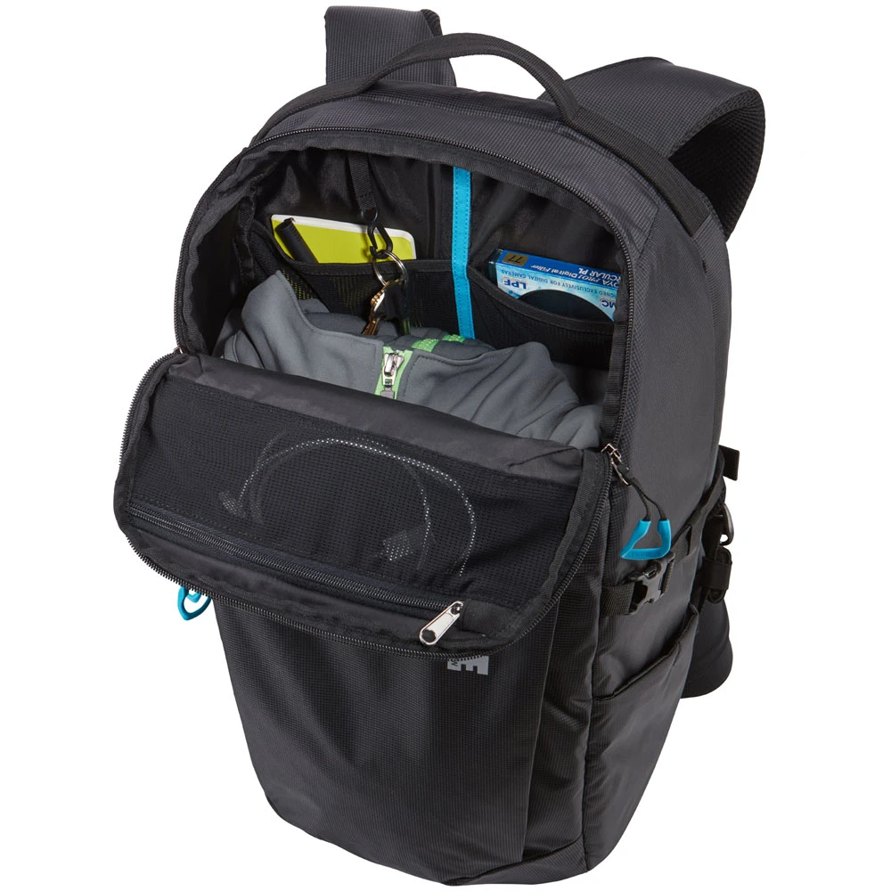 Der Thule Pack verfügt über ein gepolstertes Reißverschlussfach, in welchem du deine Kamera sowie eine Drohne verstauen kannst. Dieses Fach befindet sich oberhalb des Rucksacks und ist durch einen Rundum-Verschluss schnell zugänglich. Zudem unterliegt ein seitliches Reißverschlussfach einer kompletten Polsterung mit Fächersystem, darin lässt sich dein Zubehör sortieren. Dein Stativ kannst du in der Seitentasche ablegen und durch einen Kompressionsriemen zusätzlich festigen. Des Weiteren verfügt der Rucksack über ein gepolstertes Notebookfach mit integriertem iPad-Fach. Dieses befindet sich auf der Rückseite und wird durch einen seitlichen Reißverschluss zugänglich. Für Unterlagen ist auf der Front ein schmales Fach vorgesehen.