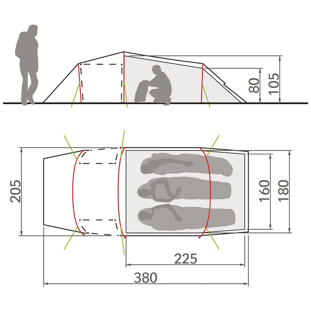 - Material Außen- und Innenzelt: 100% Polyester