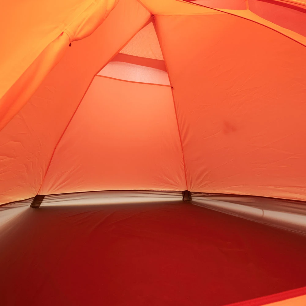 Für Spaß, praktischen Stauraum, sowie Sicherheit und einen schnellen Aufbau sorgt das aktuelle Vaude Campo Compact XT Kuppelzelt in farbenfrohem Terracotta. Die Konstruktion aus einer Apsis und einem geräumigem Vorzelt bietet ausreichend Platz für Gepäck, Kochen und Essen sowie zuverlässigen Regenschutz bei Schlechtwetter. Ein geschütztes Belüftungs-System am Dachfirst unterstützt das interne Klima und sorgt für eine gute Luftzirkulation bei Tag und in der Nacht. Über eine Eingangstür gelangt man komfortable in das geräumige Gruppenzelt hinein, wobei der Eingangsreißverschluss zusätzlich wassersicher abgedichtet ist. Taschen im Innenzelt, sturmsichere Abspannleinen und das robuste Aluminiumgestänge machen das Vaude Zelt mit Überwurf zu einem treuen und praktischen Begleiter auf all deinen Touren in die Natur.