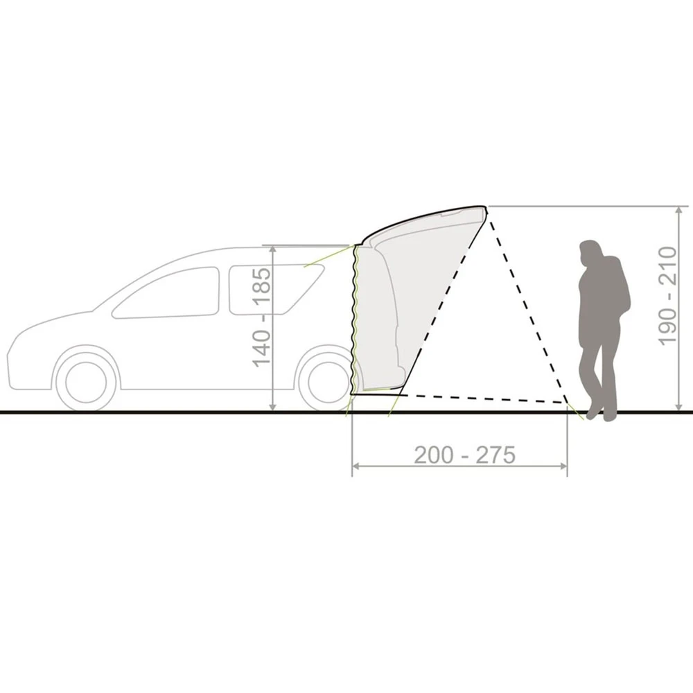 Verwandeln Sie Ihr Auto schnell und einfach zu einem Campingmobil. Mit dem Drive Trunk von Vaude vegrößern Sie den Innenraum Ihres Kombi, SUV oder Minivan. Über die Abspanngurt-Konstruktion befestigen Sie das Vorzelt einfach an die Kofferraumklappe und schaffen sich somit Platz zum Kochen, Umziehen, Schlafen oder Verweilen.
