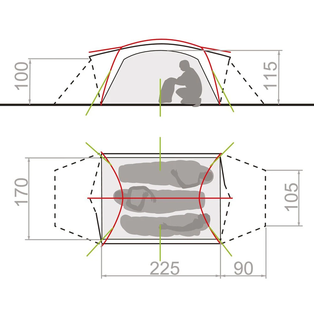 - Zeltfläche (innen): 3,8 m²