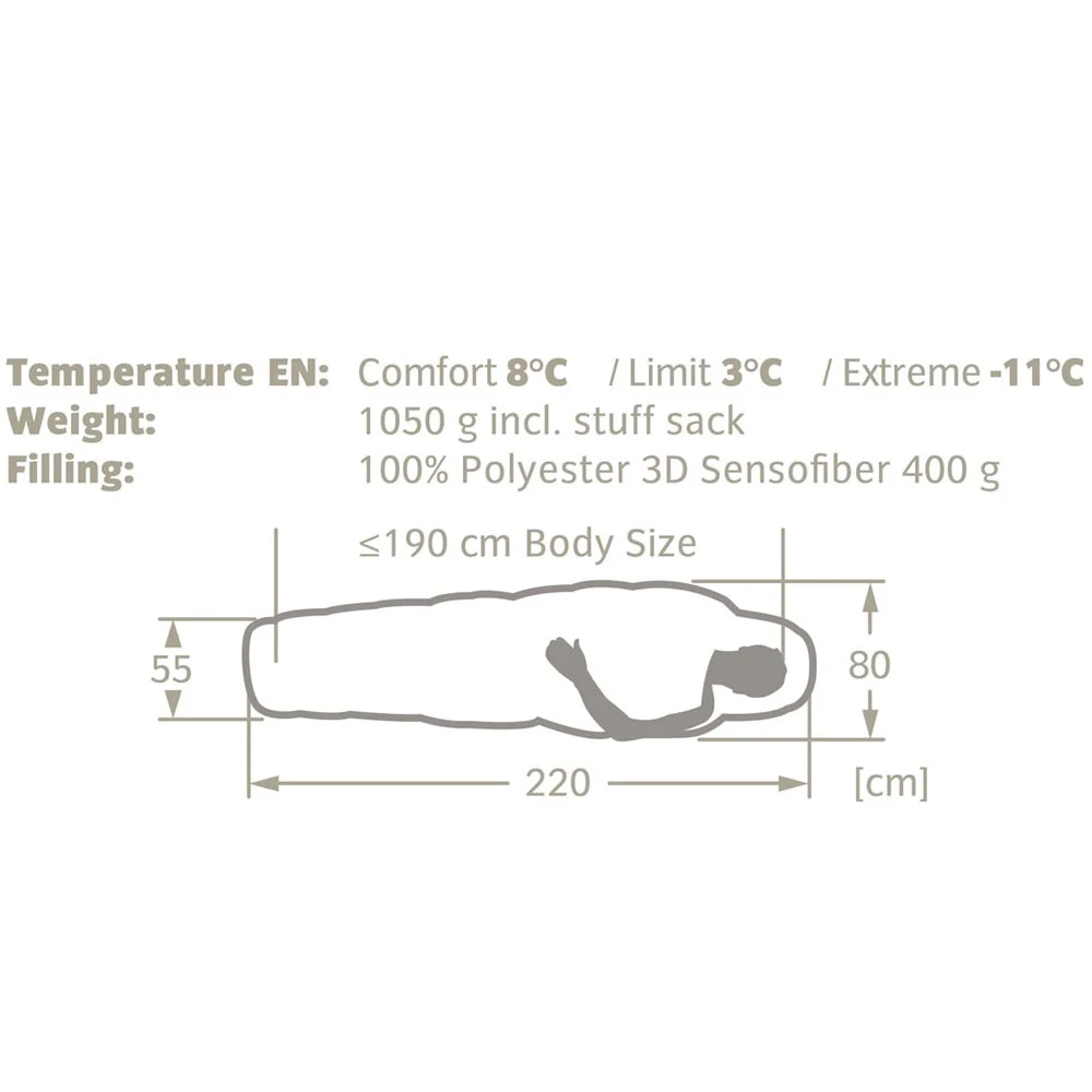Im Spätsommer und im Frühherbst ist der Vaude Sioux 400 SYN genau der richtige Begleiter für deinen nächten Campingausflug ins Grüne. Trotz seinem geringes Gewicht und dem kleine Packmaß hält er dich, dank seiner Zwei-Lagen Konstruktion, auch bei Temperatur um den Gefrierpunkt wohlig Warm. Seine syntetische Dämmumg ist besonders pflegeleicht und vor allem schnelltrocknend. Aber auch im feuchten Zustand ist er, mittels Sensofieber-Kunstofffüllung noch gut wärmend. Auch seine Mumienform minimiert die entstehenden Lufträume und der Wärmehaushalt wird optimal ausgenutzt.