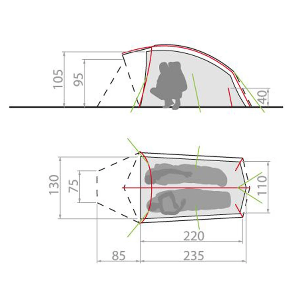 - Material Innenzelt und Zeltboden: 100% Polyamid, 40 D Ripstop