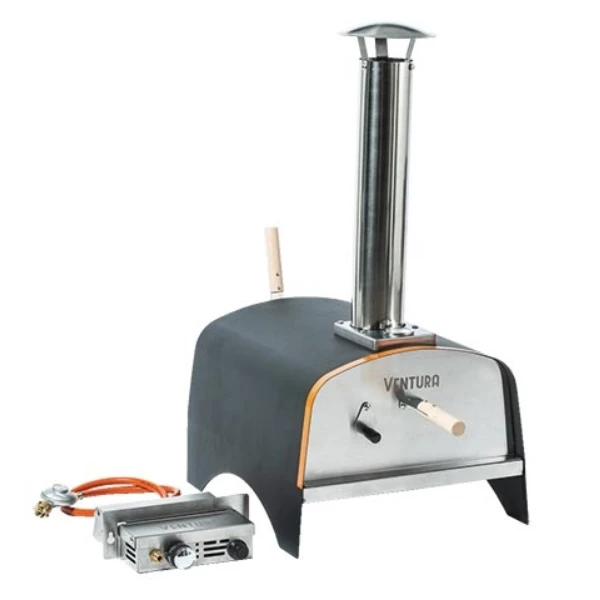 Der vormontierte und transportable Hybrid Outdoor Pizzaofen Speziale erreicht mit seiner Gas- oder Pelletbefeuerung innerhalb kurzer Zeit Temperaturen von bis zu 500 Grad C. Perfekt für authentische Pizza Napoletana. Dank des eingebauten Thermometers kannst du die Temperatur direkt über der großen Ofentür mit Guckloch ablesen. Und um die Befeuerungsart des Ventura Speziale Hybrid Outdoor Pizzaofens zu ändern, musst du lediglich die Brennereinheit austauschen.
